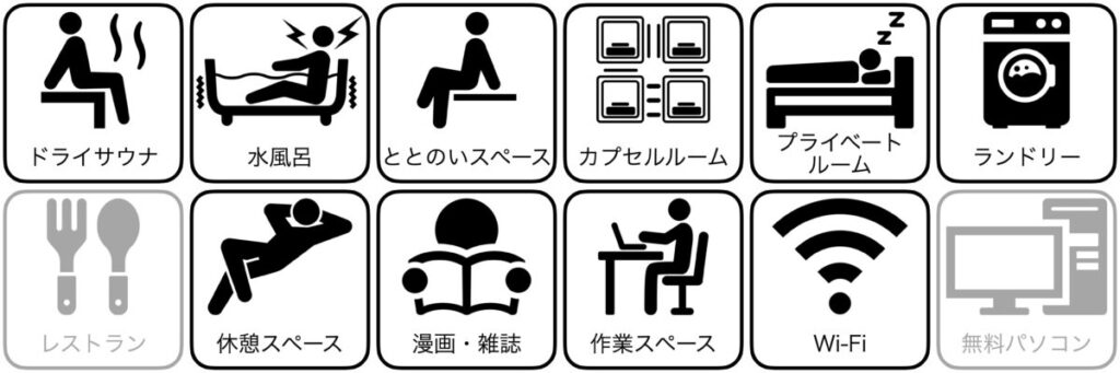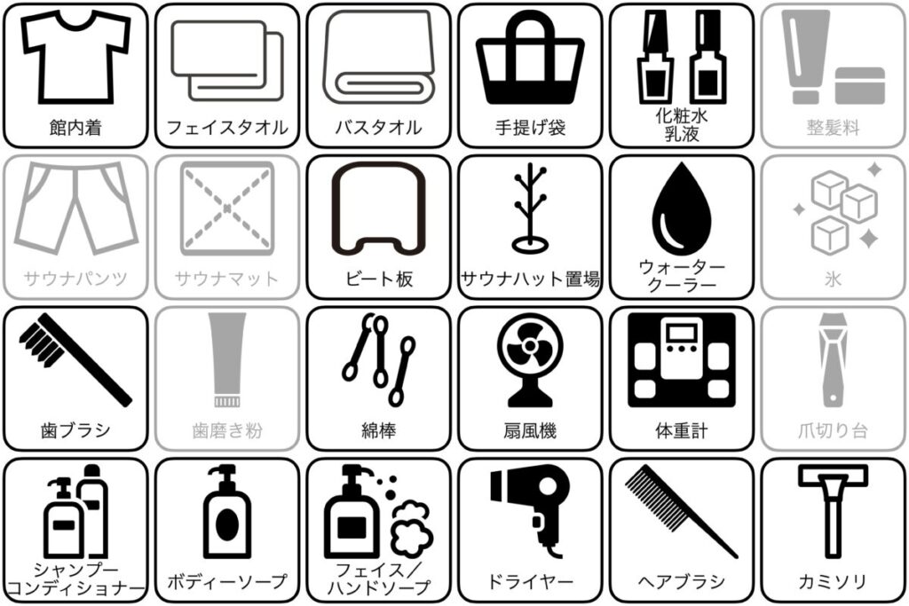 | サウナパンツ使い放題 | ー | サウナハット置き場 | ○ |