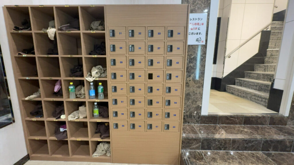 - 靴は下駄箱に入れて鍵をフロントへ
