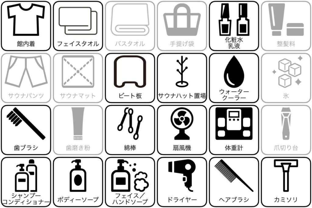 | サウナパンツ使い放題 | ー | サウナハット置き場 | ○ |