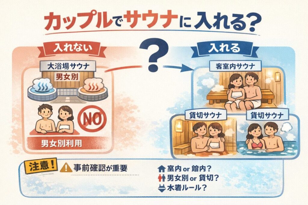 「カップル利用可」=「サウナ同伴可」ではない点が最大の落とし穴です。