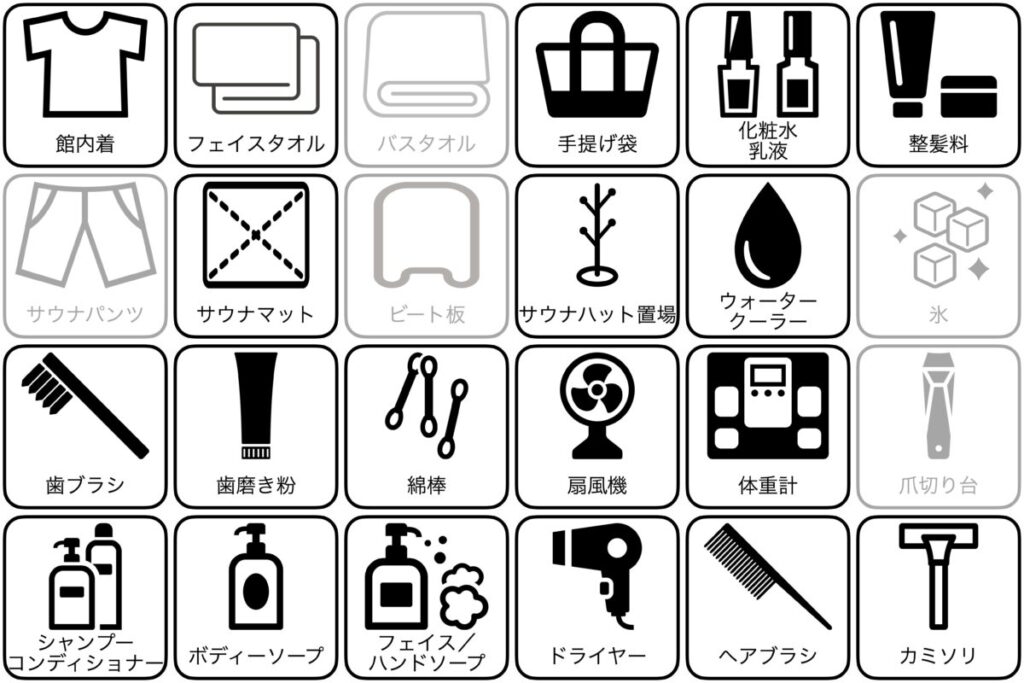 サウナマット使い放題 | ○ | 氷(クーラーボックス) | ー |